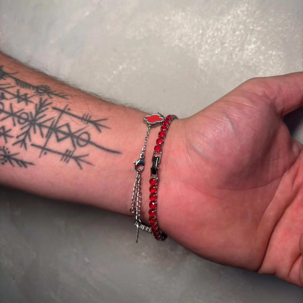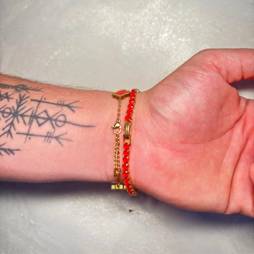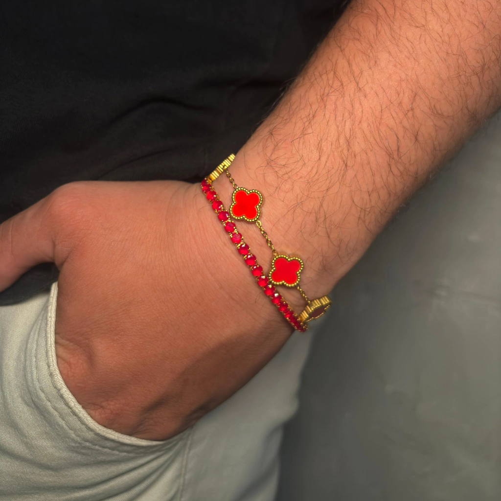 O Combo Red une a sofisticação da pulseira Trevo e a elegância da Riviera, ambas em vermelho vibrante, resultando em um conjunto moderno e marcante. Disponível nas versões prata e dourada, é a escolha ideal para quem busca impacto visual e autenticidade em cada detalhe.